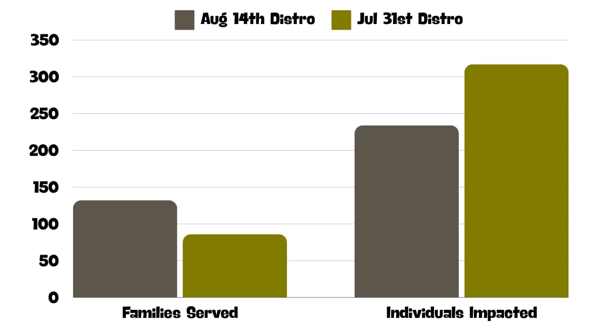 We are always in need of volunteers at our distributions. We have distributions every other Wednesday. Our next distribution is Tomorrow August 28th! Volunteers can come and help set-up, pass our groceries, and/or clean up. We begin setup every distribution at 3:30pm